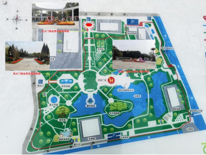 布置三:在公园西大门、北大门入口处、宝瓶广场处氛围布置效果。